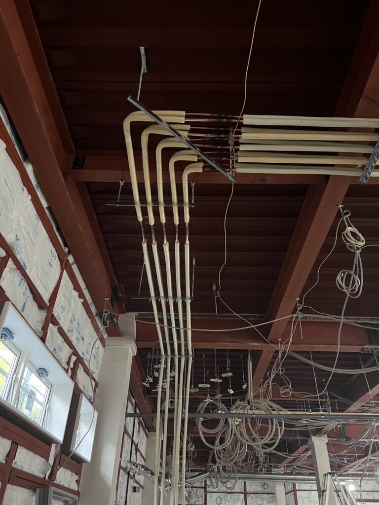 本日は空調設備の冷媒配管仕込み作業を行いました。
