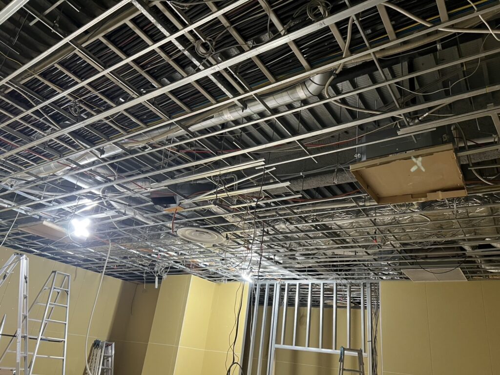 天井に直接取り付ける天カセエアコンはバランス良く広がるため広い空間でもムラなく快適に保てるのが特徴です🌱